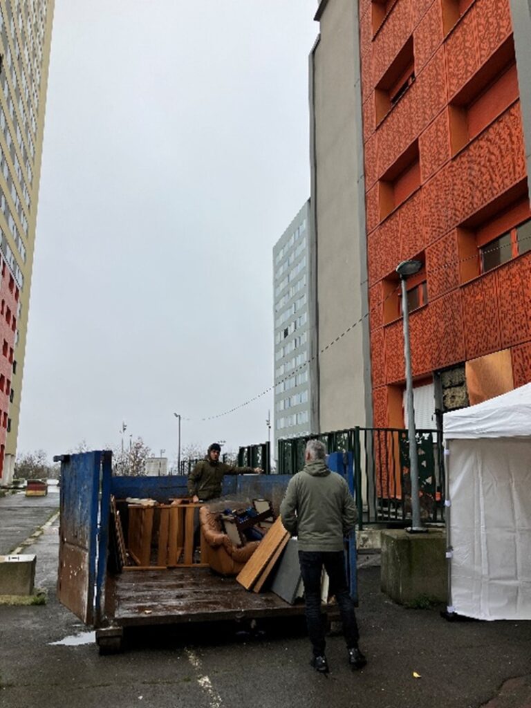 Publié le 19 décembre 2025A la suite de la phase d’élaboration du second Plan de Sauvegarde du Bâtiment 3 de la dalle de La Noue, débutée fin 2024, et à l’approche du démarrage des travaux de réhabilitation de la copropriété, l’année 2025 se conclut par une action de désencombrement des parties communes et des logements, coordonnée et accompagnée par les équipes d’Espacité sur deux demi-journées, les vendredi 28 et samedi 29 novembre 2025.