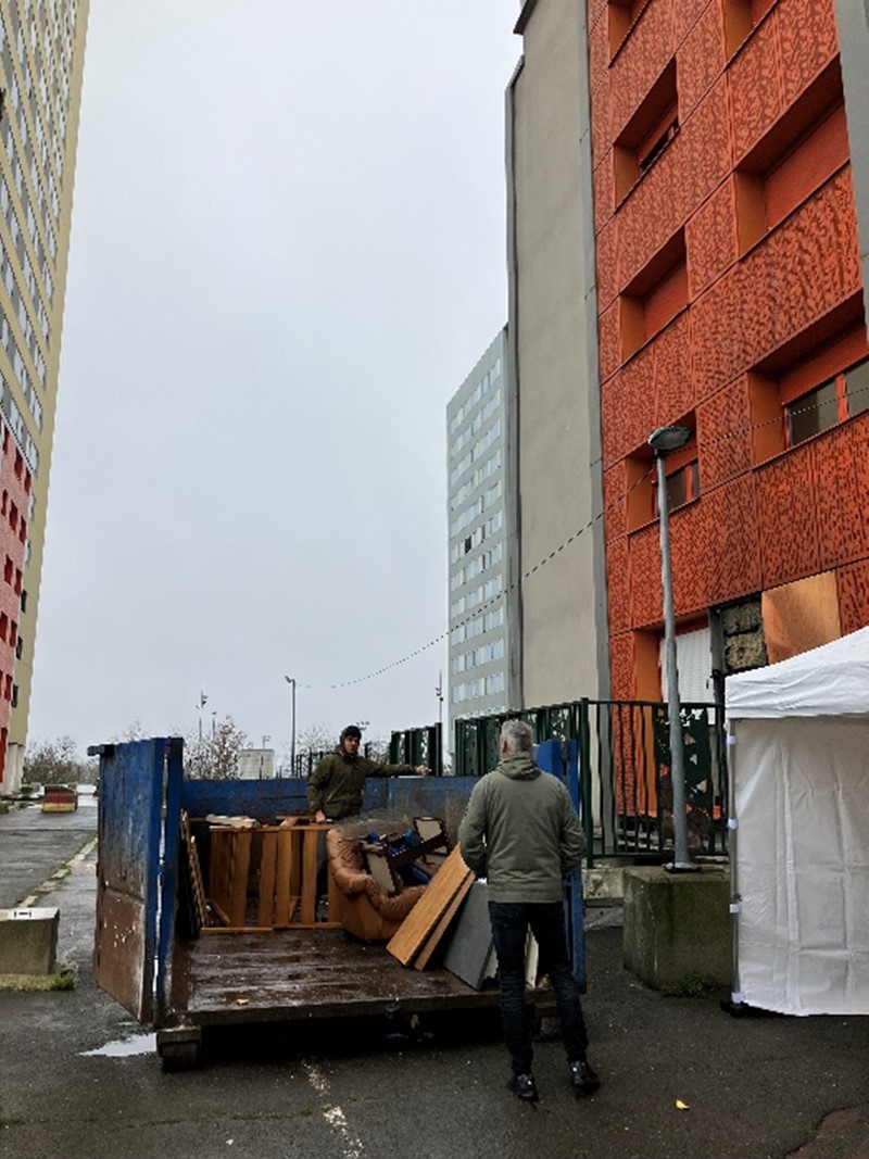 Une action de désencombrement afin de préparer au mieux l’arrivée des travaux de réhabilitation de la copropriété.